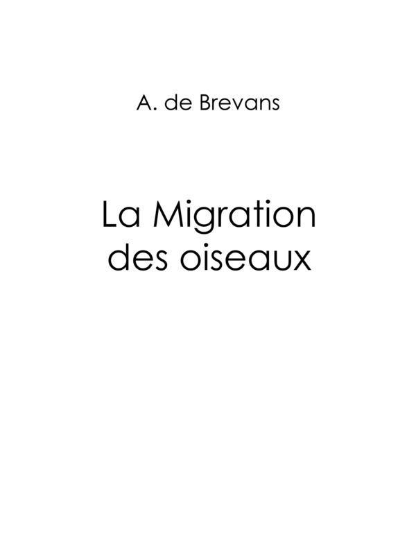 Ce n’est pas une des moindres curiosités ou des moindres merveilles de la nature que la translation bisannuelle du monde des oiseaux des contrées du Nord vers celle du Midi, et de celles-ci vers les premières. Certaines espèces parmi les quadrupèdes, les poissons et les insectes, sont aussi soumises à des migrations : mais l’universalité, on peut dire, et la régularité de ce double mouvement de va-et-vient chez les oiseaux, comme s’il était astreint aux oscillations d’une vaste pendule ; la puissance de locomotion qu’il suppose chez ces êtres, en apparence si frêles, pour accomplir leurs vastes parcours ; la sagacité qu’il implique pour prévoir les saisons, les conditions de l’atmosphère et la direction dans l’espace, étonnent l’imagination, et la surprise diminue à peine lorsqu’on cherche à approfondir les choses, à déterminer les causes, les lois, les péripéties de ce grand phénomène.