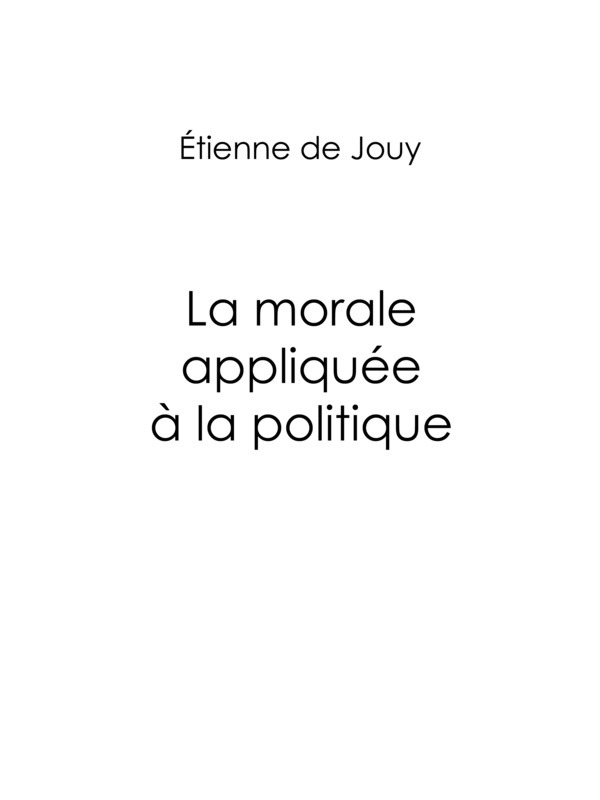Décidé à dire sans amertume, mais aussi sans complaisance, ce que je crois être la vérité, je crains de me trouver bien loin des idées et des routes connues ; d’avoir quelquefois à tenir un langage qui paraîtra téméraire, non parce qu’il sera violent, mais parce qu’il sera nouveau ; car c’est principalement de la morale dans les hommes et dans les emplois publics que je me propose de traiter dans cet ouvrage.