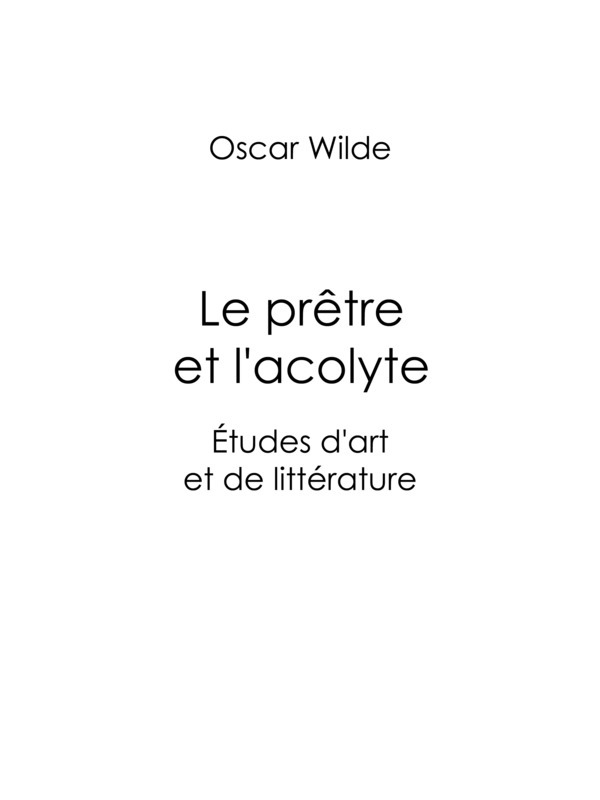 On y trouvera tout d’abord la nouvelle LE PRÊTRE ET L’ACOLYTE, publiée d’abord sans signature dans THE CHAMELEON (vol. I, n° 1, décembre 1894), puis réimprimée dans l’œuvre posthume du poète.