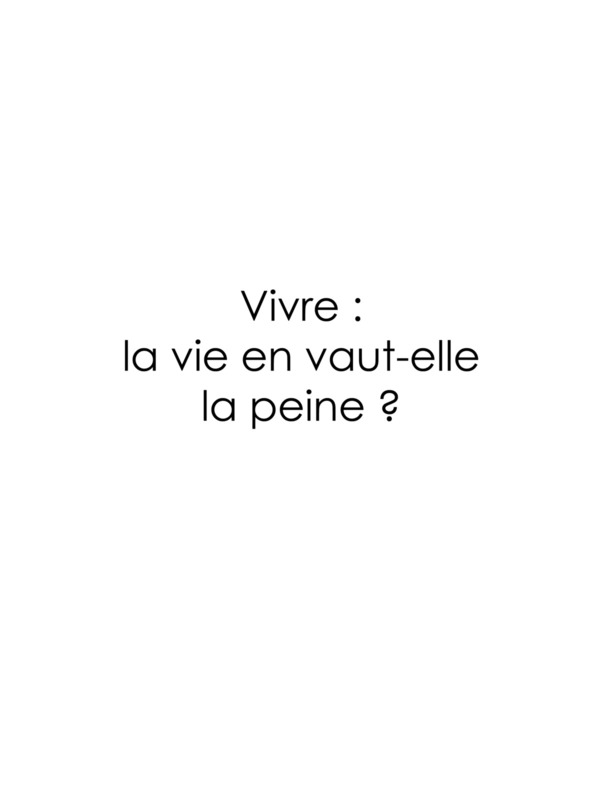 Cette situation, je le sens bien, ne s’explique pas à première vue. Mieux comprise même, on pourrait peut-être encore la tenir pour fictive. Il me faut donc tout d’abord l’exposer à loisir et avec clarté. Dans ce but, nous considérerons successivement deux points. Le premier nous dira la portée exacte du doute contenu dans cette interrogation : Is live worth living ? (La vie est-elle digne d’être vécue ? – traduction littérale) ; le second, l’importance nouvelle que ce doute a pris de nos jours.