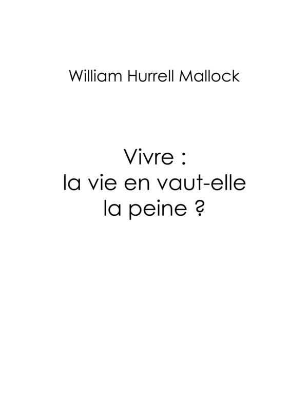 Qu’il soit bien établi, tout d’abord, qu’en demandant si la vie mérite qu’on la vive, nous ne cherchons pas à savoir si, dans sa balance, le plateau des peines l’emporte toujours et nécessairement sur celui des plaisirs ; pas plus que nous ne cherchons à savoir si quelqu’un a jamais été ou est encore heureux. Tout œil qui n’est pas vicié découvre clairement que le bonheur, sous des formes diverses, a été et continue d’être le partage des hommes. Les pessimistes auront beau s’ingénier, ils perdront leur temps à vouloir prouver à celui qui se croit heureux qu’il doit être en réalité misérable. La discussion ne porte donc pas sur cet axiome en lui-même évident, que la vie à bien des hommes a paru digne d’être vécue, mais sur cette proposition bien différente, qu’il en doit être de même pour tous. Et c’est bien ainsi qu’on l’entend, quand on lui attribue les qualités qu’on lui reconnaît universellement de nos jours ; quand on affirme, comme une vérité générale, qu’elle est digne d’être vécue, quand on lui applique ces hautes qualifications qui sont actuellement en usage. Aujourd’hui en effet, la vie est, comme on sait, une chose sacrée, solennelle, sérieuse et pleine de sens. Lui enlever ces épithètes, c’est faire une sorte de blasphème. Et voici ce que signifie ce langage : il signifie que la vie a sa valeur profonde, inhérente à elle-même, indépendante de ce que les circonstances lui font perdre ou gagner, une valeur que tel homme, grâce à ses propres succès, pourra apprécier entièrement, mais qui ne sera pour tel autre, malgré tous les échecs, ni détruite, ni même amoindrie. Certaines formes de l’amour, par exemple, peuvent nous révéler, nous dit-on, cette valeur de la vie ; mais ce qu’un amour heureux est censé nous révéler ne saurait être anéanti par un amour sans espérance. Cette valeur fait partie essentielle de la vie elle-même ; ce n’est donc pas une chance accidentelle, comme la fortune ou la santé ; et l’on doit supposer que nous ne saurions la perdre par d’autres faits que ceux qui nous sont personnels.