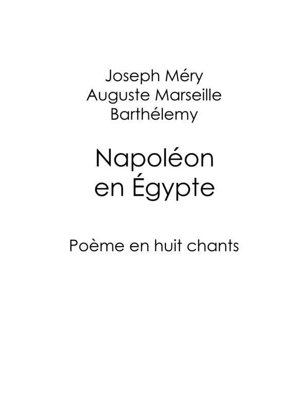 Dans une époque où tant de liberté est donnée aux travaux de l’imagination, on nous pardonnera peut-être d’avoir fait un poème qui ne rentre dans aucune des catégories inventées dans les écoles. Si les anciens rhéteurs eussent pu soupçonner qu’un jour une armée française combattrait aux Pyramides, à Thèbes, au Thabor, avec de la mitraille et des baïonnettes, sous les ordres d’un Agamemnon de trente ans, nul doute que le cas ayant été prévu, les théories ne nous auraient pas manqué pour faire, selon les règles, un poème militaire sans fable, sans merveilleux, sans amour. À défaut de ces théories, il a fallu inventer des formes en harmonie avec un sujet tout neuf.