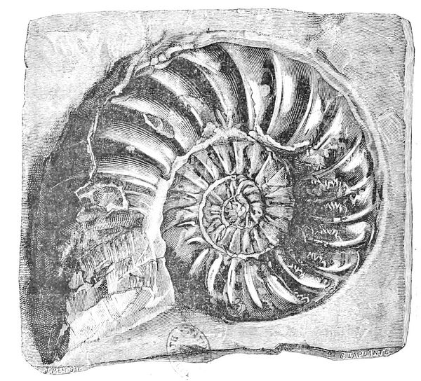 Depuis le jour où l’homme a, pour la première fois, soulevé l’épiderme terrestre pour y creuser des sillons et pour y tracer des chemins ; depuis l’époque où il a su pénétrer dans le sein de l’écorce superficielle, soit pour y dérober l’eau potable, soit pour ravir aux entrailles du sol la pierre à bâtir ou le minerai, il a dû mettre en lumière l’existence des pétrifications et des coquilles. Comment pourrait-il en être autrement, puisque les débris d’animaux et de plantes, les empreintes de fougères, les restes d’ossements, admirables témoignages d’anciennes formes organiques, se révèlent au milieu de tous les terrains sédimentaires, plus ou moins bien conservés dans la matière minérale. Il n’est, pour ainsi dire, pas possible de creuser les assises de craie qui abondent à la surface de la terre, d’ouvrir les immenses gradins qui forment le terrain silurien, le terrain jurassique, sans y découvrir d’innombrables empreintes de coquillages (fig. 1 et 2). Croirait-on cependant que les premiers découvreurs de ces fossiles étaient bien plutôt portés à les considérer comme des reliefs bizarres, dus à une cause fortuite, à un hasard inexplicable, qu’à les regarder comme les incontestables vestiges d’êtres disparus ?