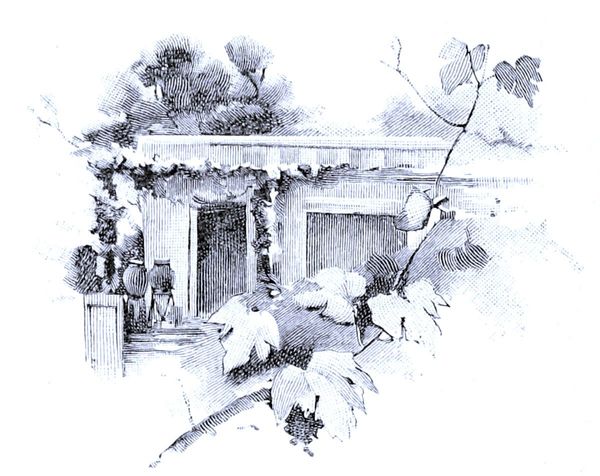 Elle était rectangulaire, avec deux pignons et des auvents à grandes ombres. Des piliers soutenaient la toiture en charpente ; des colonnettes ornaient un balcon de bois de pin où l’on pouvait goûter la douceur des soirs tiède. L’air et la lumière entraient par une grande fenêtre basse, à treillage. Une terrasse plantée d’herbes et des fleurs odoriférantes dont il est dit « qu’il vient plus de parfums de la Campanie que d’huile des autres contrées », séparait la maison des oliviers, de la roseraie et des figuiers de Carthage.