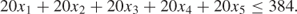 Finally, the fact that we have only a total of eight assembly workers each working 48 hours a week gives us a labour capacity of 384 hours. As each unit of each product uses 20 hours of this capacity, we have the constraint
