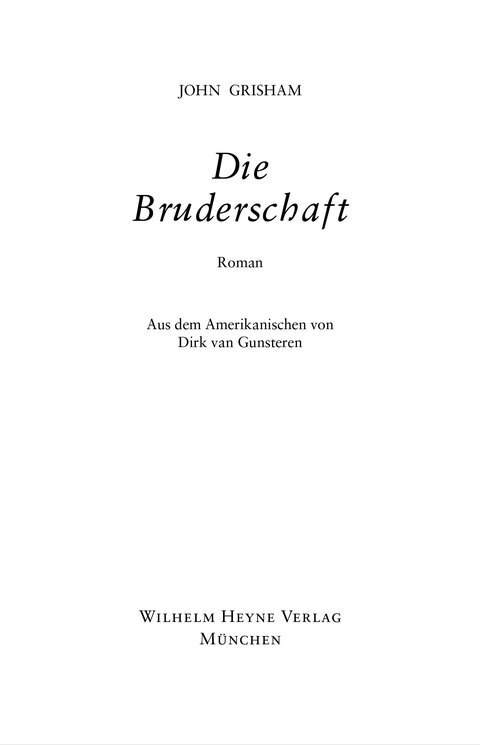 »Beschlossen und verkündet«, sagte Spicer mit Entschiedenheit. T. Karl machte einen Vermerk im Protokoll und Magruder setzte sich verärgert. Er hatte seine Klage vor dem Untersten Bundesgericht eingereicht, indem er T. Karl eine einseitige Zusammenfassung seiner Behauptungen gegen Schneiter übergab. Nur eine Seite. Die Bruderschaft verabscheute Papierkram. Eine Seite, und man bekam einen Gerichtstermin. Schneiters Erwiderung hatte aus sechs Seiten voller Beschimpfungen bestanden, die T. Karl allesamt gestrichen hatte.