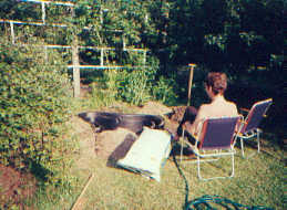 Im Hintergrund ist ein Spalier zu sehen, an dem Heckenrosen gewachsen waren. Wir opferten es, als wir später weitere Teiche bauten...