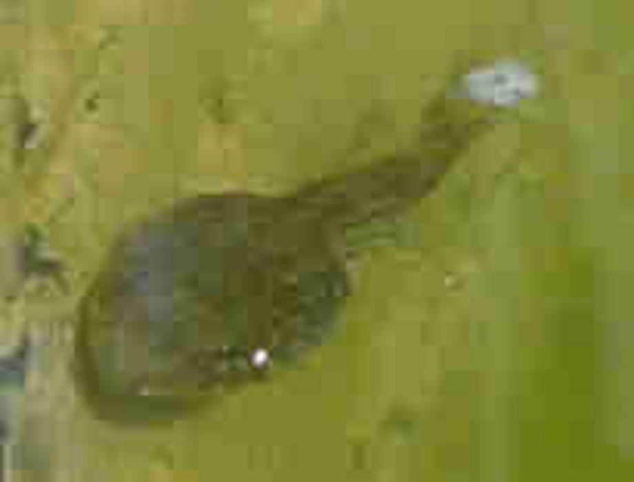 Kaum konnte er aufs Wasser schauen, erstarrte er zur Salzsäule, und zwar mit einer Miene, die purer Triumph war. Strahlend über alle Backen nickte er uns vorsichtig zu und zeigte mit einem Finger der fest an den Körper gepressten rechten Hand zum Teich. Kein Zweifel, er sah einen Fisch! Langsam rückten wir nun auch vor. Doch als wir am Ziel waren, ließ sich niemand blicken.