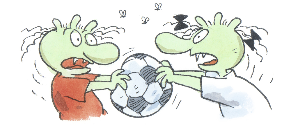 »Das da gehört mir!«, schreit das eine Olchi-Kind. »Ich hab es zuerst gesehen!«