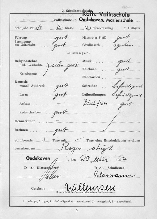 Othmar Rahm war nicht viel älter als wir, vielleicht Ende zwanzig. Der hatte den Krieg nicht erlebt, er spielte auch keine große Rolle. Er ging mit uns in den Wald, wollte, dass wir die deutschen Märchen und Erzählungen kennen. Er versuchte, uns Wege zu ebnen. Ich weiß noch, wie er vor der Entscheidung für oder gegen das Gymnasium sagte: »Ihr sitzt jetzt in einem Zug, die eine Weiche führt euch nach Paris, die andere nach Hinteroberfischbachshausen.« [lacht] Und: »Ihr wollt alle nach Paris!« Das war drastisch. Nein, er sei nicht zufrieden gewesen mit sich als Lehrer, sagte er mir später. Ich habe ihn bewundert.