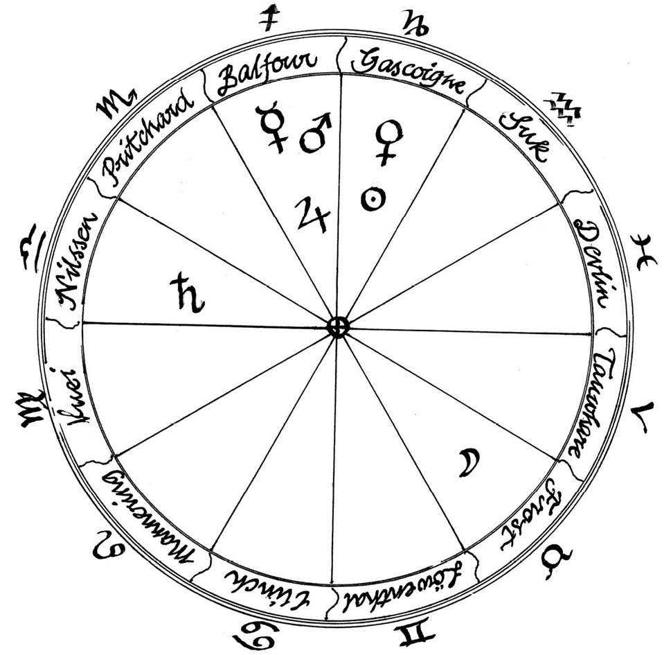 Die Sternbilder und Planetenstellungen in diesem Buch wurden auf astronomischer Grundlage berechnet. Das bedeutet, dass wir das Himmelsphänomen der sogenannten Präzession anerkennen, also der Verschiebung des Frühlingspunktes – der astrologischen Entsprechung des Greenwich-Meridians – aufgrund der Kreiselbewegung der Erde. In früheren Zeiten fand die Tagundnachtgleiche im Frühling (in südlichen Breiten die Herbst-Tagundnachtgleiche) statt, als sich die Sonne im ersten Tierkreiszeichen Widder befand. Inzwischen befindet sich die Sonne zu diesem Zeitpunkt im zwölften Zeichen, dem der Fische. Folglich verschiebt sich, wie die Leser dieses Buches bemerken werden, jedes Tierkreiszeichen um ungefähr einen Monat nach hinten – anders als in der allgemein bekannten Astrologie. Mit dieser Korrektur wollen wir der herkömmlichen Astrologie keineswegs zu nahe treten; wir erlauben uns allerdings die Feststellung, dass das Festhalten an obigem Irrtum in Widerspruch zu dem unstreitigen Wissen unseres 19. Jahrhunderts über das Firmament erfolgt. Und wir wagen darüber hinaus die Vermutung, dass diese Haltung ihrem Wesen nach dem Zeichen Fische entspricht – eine Haltung, die in der Tat bezeichnend ist für Menschen, die im Fische-Zeitalter geboren wurden, einer Zeit der Spiegel, der Hartnäckigkeit, des Instinktes, der Zweiheit und der Heimlichkeiten. Dies mag uns genügen. Es festigt abermals unser Vertrauen in den unendlichen und wissenden Einfluss des
