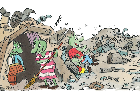 Olchis freuen sich, wenn sie im Müll leckere Sachen finden.