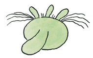 Ein Olchi hat Hörhörner. Er hört Ameisen husten und Regenwürmer rülpsen.