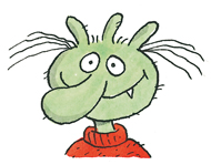 Ein Olchi wäscht sich nie. Daher stinkt er fein faulig. Fliegen lieben die Olchis, aber ihr Mundgeruch lässt die Fliegen oft abstürzen.