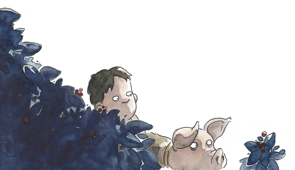 Aber wer schon einmal mit einem Schwein in der Nacht durch den Wald gewandert ist, der weiß, das ist keine einfache Angelegenheit. Ferkelchen grunzte und quiekte und zerrte an seinem Strick, denn furchtbar mutig sind Schweine meistens nicht, und der Wald roch fremd und gefährlich für seinen kleinen Schweinerüssel. Darum rannte Ferkelchen aufgeregt mal hierhin und mal dahin, dass sich der Strick um die Stämme der Bäume wickelte und die Vögel oben in den Ästen vor Schreck schlaftrunken aus ihren Nestern flogen.
