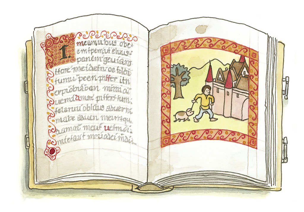 Ja, nicht einmal sie selbst und ihre Frauen und Kinder gehörten ihnen! All das gehörte dem Ritter, der in seiner großen, stolzen Burg hoch über dem Tal wohnte, und für den mussten sie darum auch ordentlich schuften. Sie mussten ihm von dem Getreide abgeben, das sie ernteten, und von dem Kohl und den Rüben; er bekam Fleisch von ihren Schweinen und Käse aus der Milch ihrer Kühe und Ziegen; und wenn er ihnen Nachricht schickte, dass sie jetzt mal ein bisschen auf seinen Feldern arbeiten sollten oder ihm einen neuen Brunnen graben, aber hopplahopp!, dann mussten sie ihre armseligen Hacken hinschmeißen und ihre Arbeit liegen lassen und rennen. Und dass ihnen deshalb ihr eigenes Getreide auf den Feldern verschimmelte und ihre Kühe vor Schmerz schrien, weil sie gemolken werden wollten, kümmerte den Ritter gar nicht. Wenn ein Bauer nicht tat, was sein Grundherr von ihm wollte, ließ der ihn einfach auspeitschen, schließlich gehörte der Bauer ja ihm.