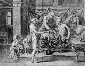 Den Auftrag für eine Darstellung des Themas hatte Jacques-Louis David im Frühjahr 1786 von Charles-Michel Trudaine de la Sablière erhalten, einem wohlhabenden Parlamentsmitglied und begabten Gräzisten. Das vereinbarte Honorar war großzügig: 6000 Livres als Vorschuss und weitere 3000 bei Ablieferung (Louis XVI. hatte für den größerformatigen Schwur der Horatier nur 6000 Livres bezahlt). Als das Gemälde im Salon von 1787 ausgestellt wurde, fand es sofort Anerkennung als beste Darstellung des Themas. Sir Joshua Reynolds hielt es für »die vorzüglichste und bewunderungswürdigste Kunstbemühung seit der Sixtinischen Kapelle und den Stanzen Raffaels. Für das Athen der perikleischen Zeit wäre das Gemälde eine Ehre gewesen.«