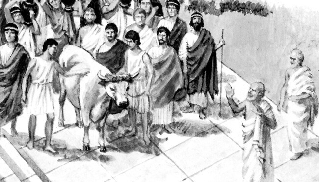 In der Stadt Athen verfügte man über ein Verfahren zur Unterscheidung von Recht und Unrecht. Auf der Südseite der Agora stand der Gerichtshof, in dem die Heliasten zusammenkamen, ein großes Gebäude mit Holzbänken für die Richterversammlung an einem Ende und einer Plattform für den Ankläger und den Verteidiger am anderen Ende. Die Verhandlungen begannen mit einer Rede des Anklägers, gefolgt von einer Rede der Verteidigung. Danach befanden die Heliasten, ausgeloste Richter, deren Zahl von 200 bis 2500 variieren konnte, durch geheime Abstimmung oder durch Handzeichen, wo die Wahrheit lag. Diese Methode der Unterscheidung zwischen schuldig und unschuldig durch Zählung derer, die für einen Vortrag stimmten, wurde überall im politischen und juristischen Leben Athens angewendet. Zwei- oder dreimal pro Monat wurden alle männlichen Bürger, insgesamt etwa 30000, zu einer Versammlung auf den Pnyx berufen, einen Hügel südwestlich der Agora, um über wichtige Staatsangelegenheiten per Handzeichen abzustimmen. Für die Stadt war die Meinung der Mehrheit gleichbedeutend mit Wahrheit.