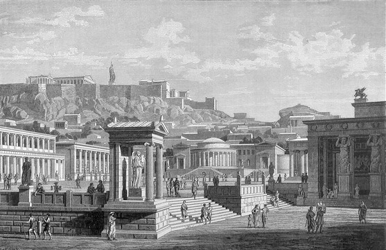 Die Größe der Stadt begünstigte Begegnungen. Rund 240000 Menschen lebten innerhalb der Grenzen Athens und seines Hafens. Von einem Ende der Stadt zum anderen, vom Piräus-Tor zum Aigeus-Tor, war es nicht mehr als eine Stunde Fußmarsch. Die Athener besaßen ein Gemeinschaftsgefühl vergleichbar etwa dem der Kinder an einer Schule oder der Gäste bei einer Hochzeit. Fremde in der Öffentlichkeit in ein Gespräch zu verwickeln war keine Spezialität von Fanatikern oder Betrunkenen.