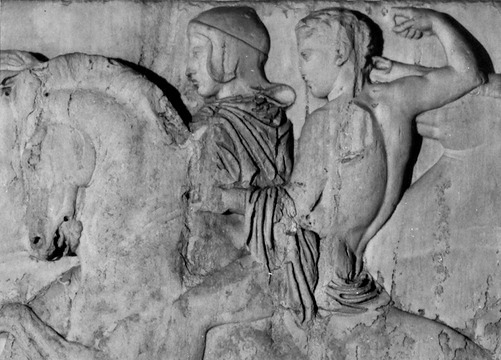 Eines Nachmittags begegnete der Philosoph, Platons Laches zufolge, in Athen zwei angesehenen Feldherren, Nikias und Laches. Die Feldherren hatten in den Armeen der Spartaner an den Schlachten des Peloponnesischen Krieges teilgenommen und sich dabei die Achtung der angesehenen Bürger der Stadt und die Bewunderung der Jugend erworben. Beide sollten als Soldaten sterben: Laches in der Schlacht bei Mantineia im Jahre 418 v.Chr., Nikias bei der unter einem schlechten Stern stehenden Expedition nach Sizilien im Jahre 413 v.Chr. Bildnisse der beiden Männer sind nicht überliefert, doch es ist denkbar, dass sie im Kampf den beiden Reitern auf einem Abschnitt des Parthenon-Frieses ähnelten.