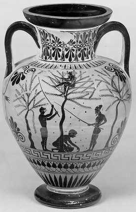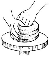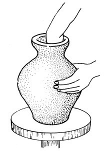 Und schon den Krug zu machen war eine gewaltige Leistung. Zuerst musste man Ton nach Athen bringen, den man gewöhnlich aus einer großen Grube am Kap Kolias herbeischaffte, gute zehn Kilometer südlich der Stadt, diesen auf eine Scheibe legen, die sich zwischen 50- und 150-mal pro Minute drehte, die Geschwindigkeit indirekt proportional zu dem Stück, das man formen wollte (je enger der Krug, desto schneller die Scheibe). Dann folgten das Befeuchten, das Abschälen überflüssigen Tons, das Bürsten und das Formen der Henkel.