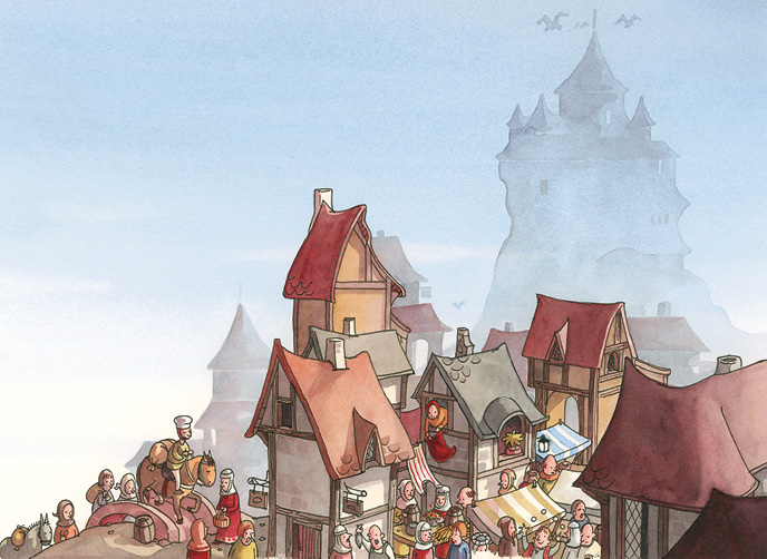 »Hm, hm, hm«, sagte der nette Ritter Hans und kratzte sich am Kinn. »Wenn du mir versprichst, gut auf meine Tochter aufzupassen, lieber Trenk, dann darf sie mit dir gehen, meinethalben. Denn in der Stadt wird ja gerade zum Lobe Gottes eine wunderschöne Kathedrale gebaut, da kann sie was lernen.«