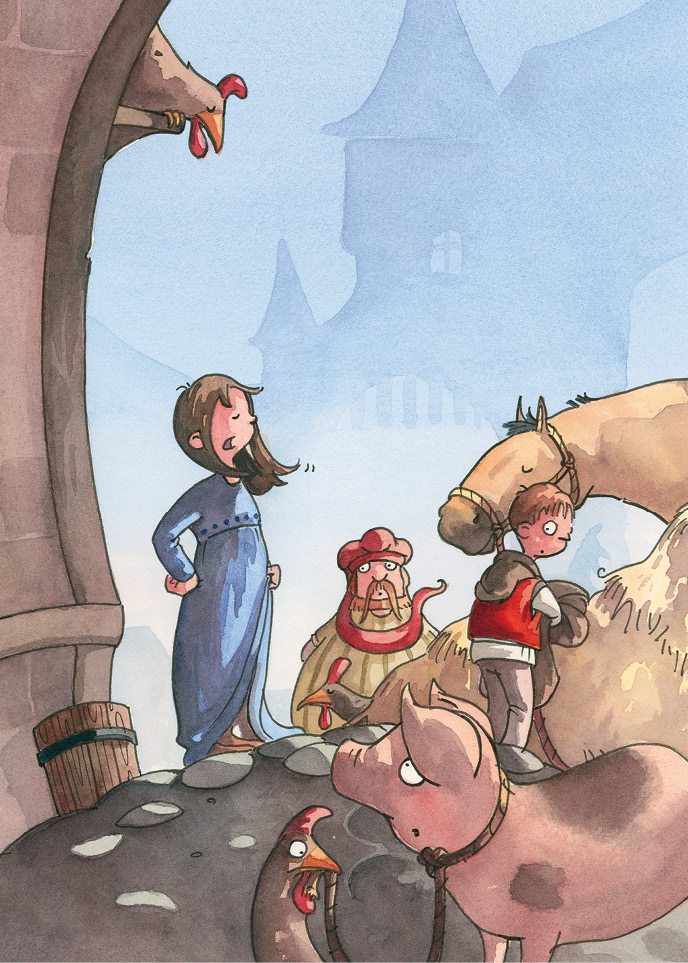 »Ich weiß gar nicht, warum immer nur du in die Stadt gehen darfst, Trenk Tausendschlag, und ich muss auf der Burg bleiben und sticken und Harfe spielen und Suppe kochen!«