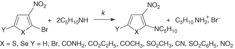 N–R [106]. Depending on the nucleophile, nitro-activated pyrroles react more rapidly or more slowly than the corresponding nitrobenzenes [106]. Also illustrated is the greater reactivity of nitroselenophenes compared to nitrothiophenes [107].