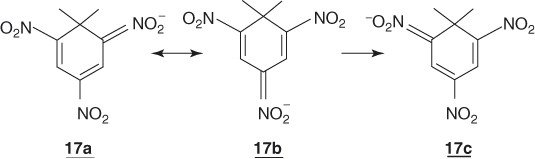 The stabilizing energy brought about by the introduction of several activating groups in 12 has not been estimated via Eq. (1.6) but other calculations have been made that leave no doubt that the introduction of additional EWG in the ortho and/or para position(s) results in an increased stabilization of the anion [4, 14, 34–37]. In the case of 2,4-dinitro- and 2,4,6-trinitro-derivatives, the calculations also predict that significantly more charge is located on the p-NO2 group than on the o-NO2 groups; that is, the resonance structure 17b is favored relative to 17a and 17c. As further elaborated in Chapter 2, this prediction is fully consistent with the experimental information derived from X-ray structure determination or NMR characterization of many stable σ-adducts.