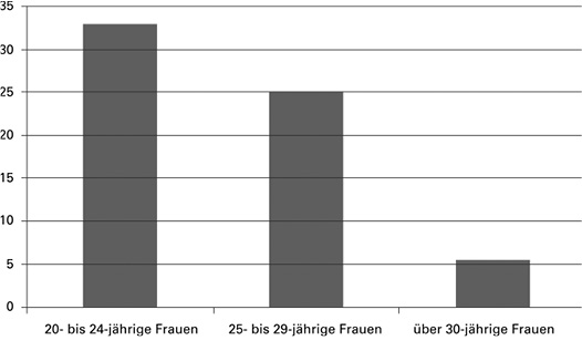 In Deutschland finden sich HPV bei 28 Prozent der 20- bis 22-jährigen und 25 Prozent der dreißigjährigen Frauen (Iftner 2010, Petry 2013). Mit zunehmendem Alter sinkt die Infektionsrate immer weiter ab. Das hat wahrscheinlich zwei Gründe: Ältere Frauen wechseln weniger häufig ihren Geschlechtspartner, und viele haben durch frühere HPV-Infektionen schon eine gewisse Immunität.
