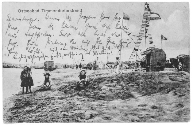 So lustig ist es hier, wie umstehend zu sehen. Wir denken oft, daß es euch großen Spaß machen würde, besonders gestern, bei ziemlich starker Brandung wäre das Baden etwas für euch gewesen. Aber eisig würdet ihr das Wasser finden gegen das Starnberger. Wenn die Großen schon fort sind, sollen die Kleinen ihnen diese Karte nur nachschicken. Seid alle brav und froh.