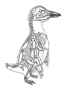 Außerhalb des Wassers sind diese Vögel wenig anmutig. Ihre Körper wirken lang, die Beine kurz. Ihre Schultern sind niedrig am Körper angesetzt, und die Knochen ihrer Flügel sind erstaunlich flach und dünn, was sie wie ein Bumerang aussehen lässt. Die natürliche Haltung eines Pinguins ist mit gebeugten Knien und »S«-förmigen Halsknochen, doch sie können ihre Gestalt auf erstaunliche Weise verändern. Wenn sie hocken, sind sie beinahe rund, was ihnen bei der Wärmespeicherung hilft, aber sie können sich auch aufrichten und wirken dann sehr schlank, groß und elegant.