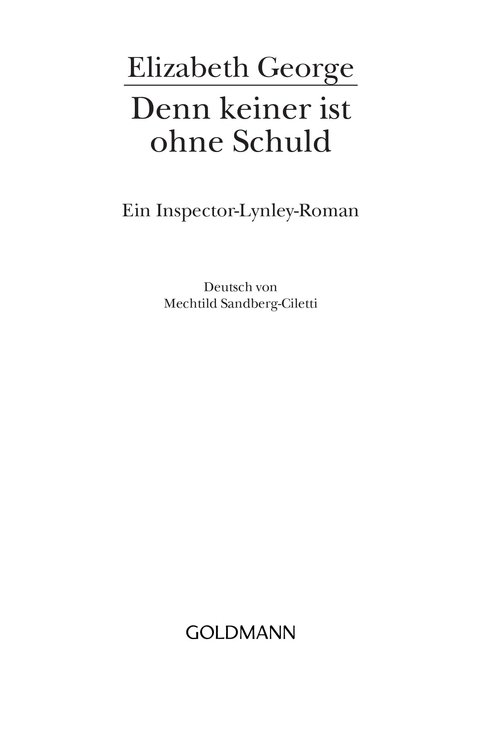 Akribische Recherche, präziser Spannungsaufbau und höchste psychologische Raffinesse zeichnen die Bücher der Amerikanerin Elizabeth George aus. Ihre Fälle sind stets detailgenaue Porträts unserer Zeit und Gesellschaft. Elizabeth George, die lange an der Universität »Creative Writing« lehrte, lebt heute in Seattle im Bundesstaat Washington, USA. Ihre Bücher sind allesamt internationale Bestseller, die sofort nach Erscheinen nicht nur die Spitzenplätze der deutschen Verkaufscharts erklimmen. Ihre Lynley-Havers-Romane wurden von der BBC verfilmt und auch im deutschen Fernsehen mit großem Erfolg ausgestrahlt. Weitere Informationen unter www.elizabeth-george.de.