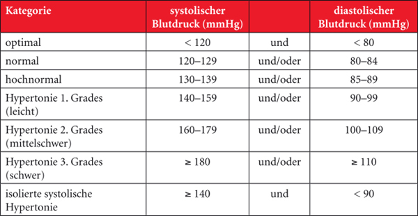 Tabelle 1: Einteilung des Blutdrucks in Kategorien