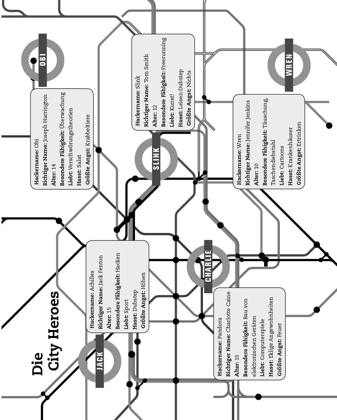 »In sechzehn Minuten seid ihr am Bahnhof«, sagte eine Stimme in ihren Ohren. Sie gehörte Obi, der zu Hause im Bunker saß und über Überwachungskameras darauf achtete, ob irgendwo die bösen Buben oder die Polizei auftauchte.