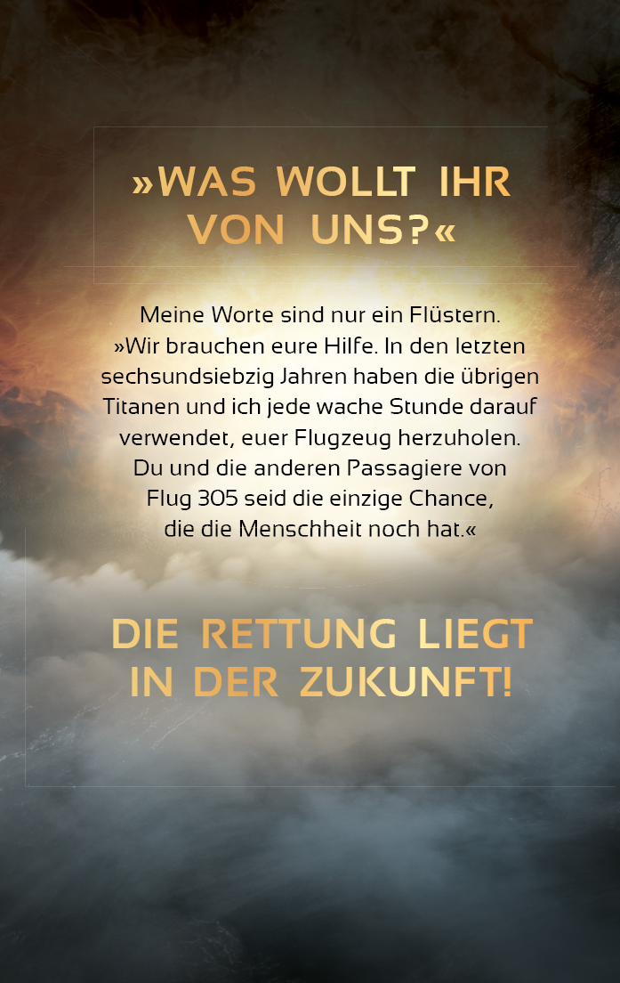 Die Beleuchtung ist erloschen, nur schwaches Mondlicht sickert durch die Fenster. Hinter mir höre ich leises Stöhnen. In dieser 777 saßen ungefähr zweihundertfünfzig Leute, als sie auf dem JFK-Flughafen startete. Wenn auch nur ein Bruchteil überlebt hat, müsste die Kabine von Stimmengewirr oder Schreien erfüllt sein. Die relative Stille ist ein schlechtes Zeichen.