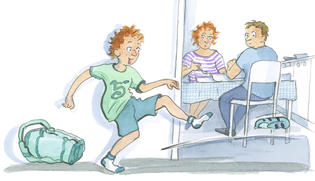 Papa guckt zur Küchentür. „Hast du deine Schuhe ausgezogen?“, fragt er. „Du weißt genau …“