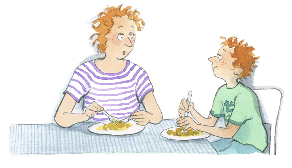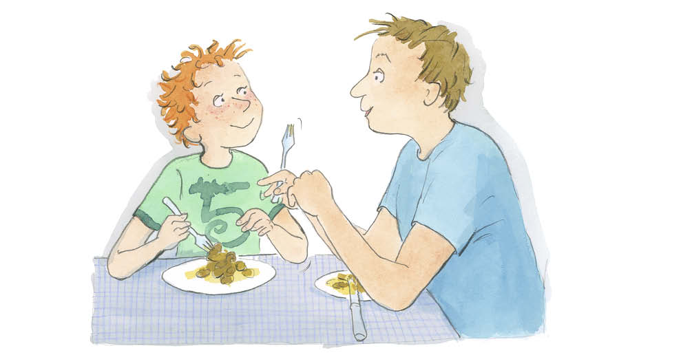 „Mhm“, sagt Jan-Arne. Mit Bratkartoffeln im Mund kann er immer nicht so gut reden.