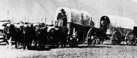 Each wagon had its string of oxen hitched to it and the driver walked along on the left side of his team with his whip over his shoulder.