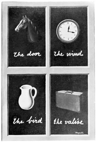 Auch in einem umfassenderen Sinn kommt das Sehen vor dem Sprechen: Durch das Sehen bestimmen wir unseren Platz in der Umwelt, die sich mit Worten wohl beschreiben, nicht aber in ihrer räumlichen Existenz und Vielfalt erfassen lässt. Zwischen dem, was wir sehen, und dem, was wir wissen, herrscht keine feststehende Beziehung. Jeden Abend können wir die Sonne untergehen sehen. Obwohl wir wissen, dass der Grund für diesen Vorgang die Drehung der Erde (und nicht der Sonne) ist, kann diese physikalische Erklärung niemals ganz dem Augenschein entsprechen. Der surrealistische Maler Magritte befasste sich mit dieser immer gegenwärtigen Diskrepanz zwischen den Worten und dem Sehen in seinem Gemälde ›Der Schlüssel der Träume‹.