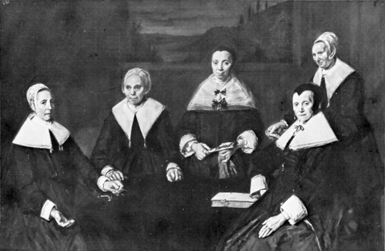 Die letzten beiden großen Gemälde von Frans Hals waren in offiziellem Auftrag ausgeführte Bildnisse der Regenten und Regentinnen – ehrenamtliche Vorsteher – des Haarlemer Altmännerhauses, eines Altenheims für Arme im Holland des 17. Jahrhunderts. Hals war zu dieser Zeit schon älter als achtzig Jahre und völlig mittellos; den größten Teil seines Lebens hatte er Schulden gehabt. Während des Winters 1664, dem Jahr, in dem er die Bilder begann, erhielt er drei Ladungen Torf von der öffentlichen Wohlfahrt; ohne diese Gabe wäre er erfroren. Vor ihm saßen nun die Repräsentanten dieser öffentlichen Fürsorge, um sich von ihm malen zu lassen.