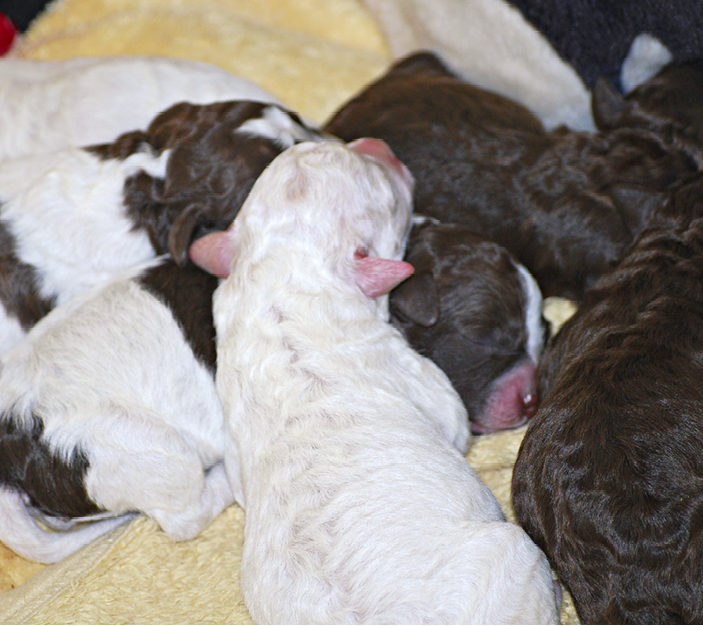 Bis zum Alter von einer Woche haben die Welpen ihr Geburtsgewicht normalerweise verdoppelt. Man kann ihnen fast zusehen, wie sie wachsen.