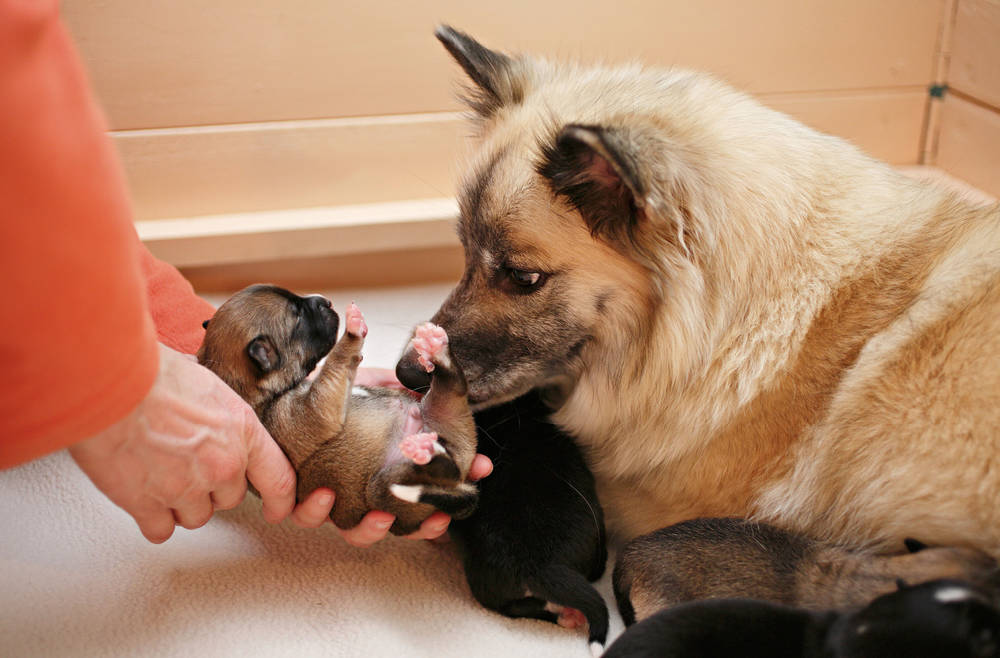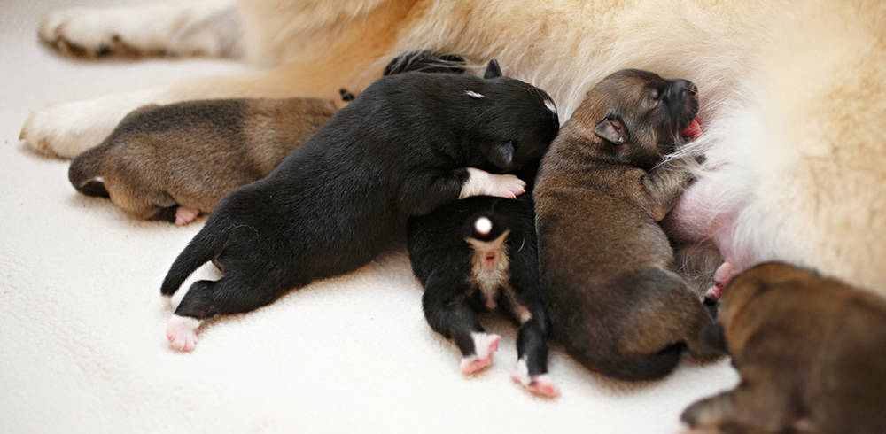 Beim Streicheln der Hündin werden die Welpen mitgestreichelt.