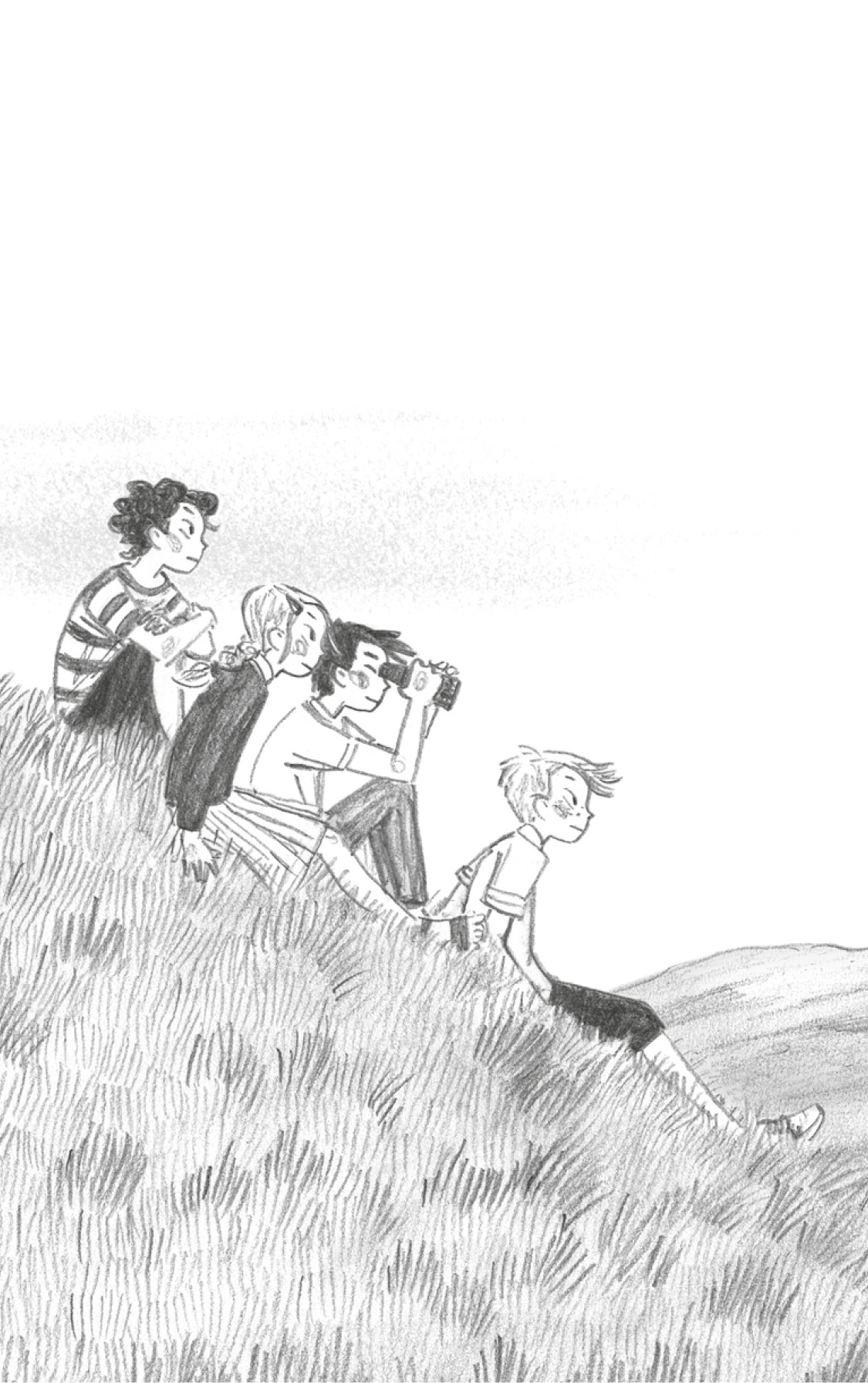 »Klasse, George hat ihr Fernglas mitgebracht!«, rief Dick plötzlich, der entdeckt hatte, dass der lange Lederriemen, der über ihrer Schulter hing, nicht zum Fotoapparat gehörte. »Prima, jetzt können wir die Dohlen beobachten und die Reiher im Sumpf.«