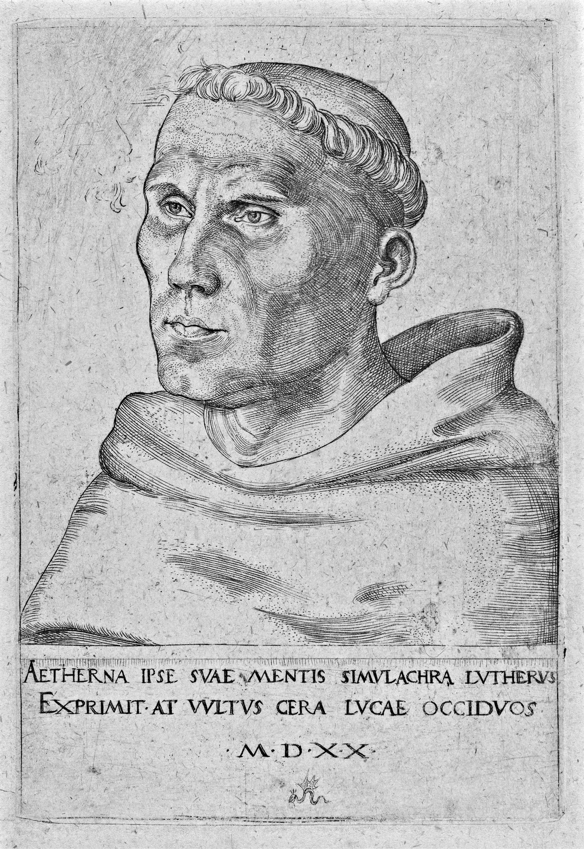 Bis 1521 trug Luther seine Mönchskutte und die Tonsur. Erst danach brach er auch optisch mit dem alten Glauben, Kupferstich von Lucas Cranach d. Ä, © The Metropolitan Museum of Art/BPK