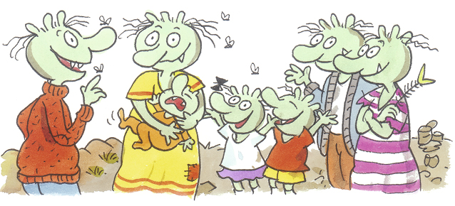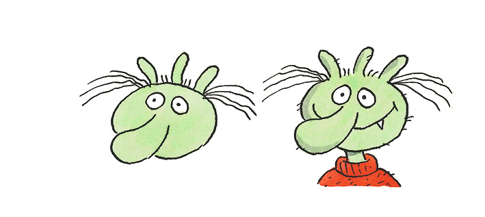 Ein Olchi wäscht sich nie. Daher stinkt er fein faulig. Fliegen lieben die Olchis, aber ihr Mundgeruch lässt die Fliegen oft abstürzen.