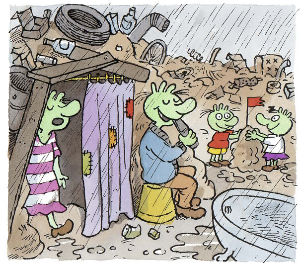 In Schlammpfützen hüpfen die Olchis gern herum.