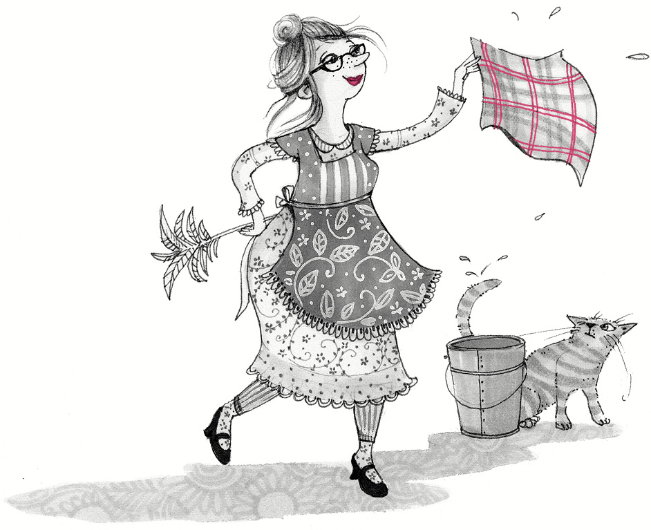 Mit einem lauten Platsch warf Frau Eule ihren Lappen in den Eimer, woraufhin Gustaf sofort verstummte. »Ich bitte euch!«, sagte sie.