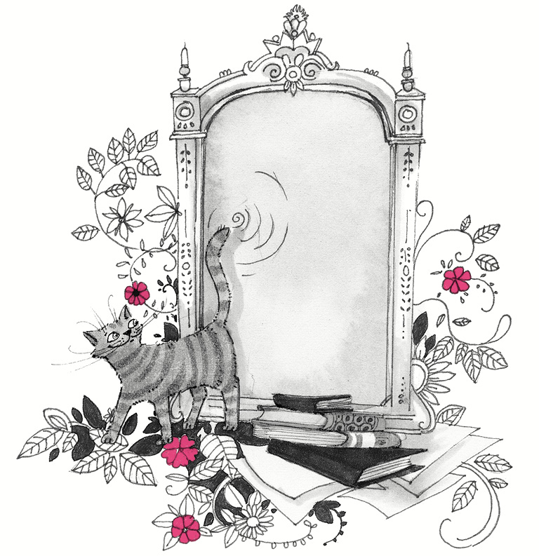 Gustaf baute sich vor dem Spiegel auf und wedelte mit seinem Schwanz hin und her. »Ich sehe ein paar Staubkörner auf deinem Goldrand. Mit meinem flauschigen PUTZSCHWANZ könnte ich die bestimmt prima entfernen.«
