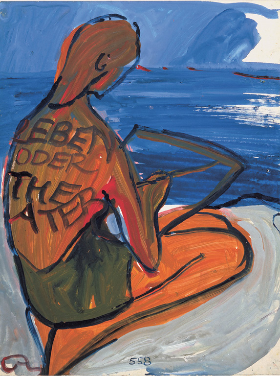 Die Bühne ihres Lebens war aufgeschlagen, mit den Namen hatte sie ihre Figuren auf die Bretter gestellt, die Farben für die Kulissen standen bereit. Das Grammofon war eingeschaltet, damit Musik ihre Geschichte inspirieren und die Szene beschallen konnte: Charlotte Salomon versuchte ihrem Leben durch die Kunst Form zu geben, brach mit herkömmlichen Ausdrucksmitteln und experimentierte mit neuen ästhetischen Möglichkeiten. Sie vermengte Elemente von Stationen-Drama, Stummfilm, Comicstrip, Daumenkino, Moritat und Cartoon, mischte wie ein Toningenieur im Studio Musik und Sprache unter und über die Malerei und kreierte so ein höchst originelles künstlerisches Produkt, wie es Vergleichbares bis dahin nicht gab – und bis heute nicht gibt. Sie riskierte viel, öffnete ihr Innerstes, trug ihre Haut zu Markte – um ihre Haut zu retten, sich als Person zu bewahren. Im Sommer 1940 begann sie ihr Werk, eine Operetta furiosa: Leben? oder Theater?